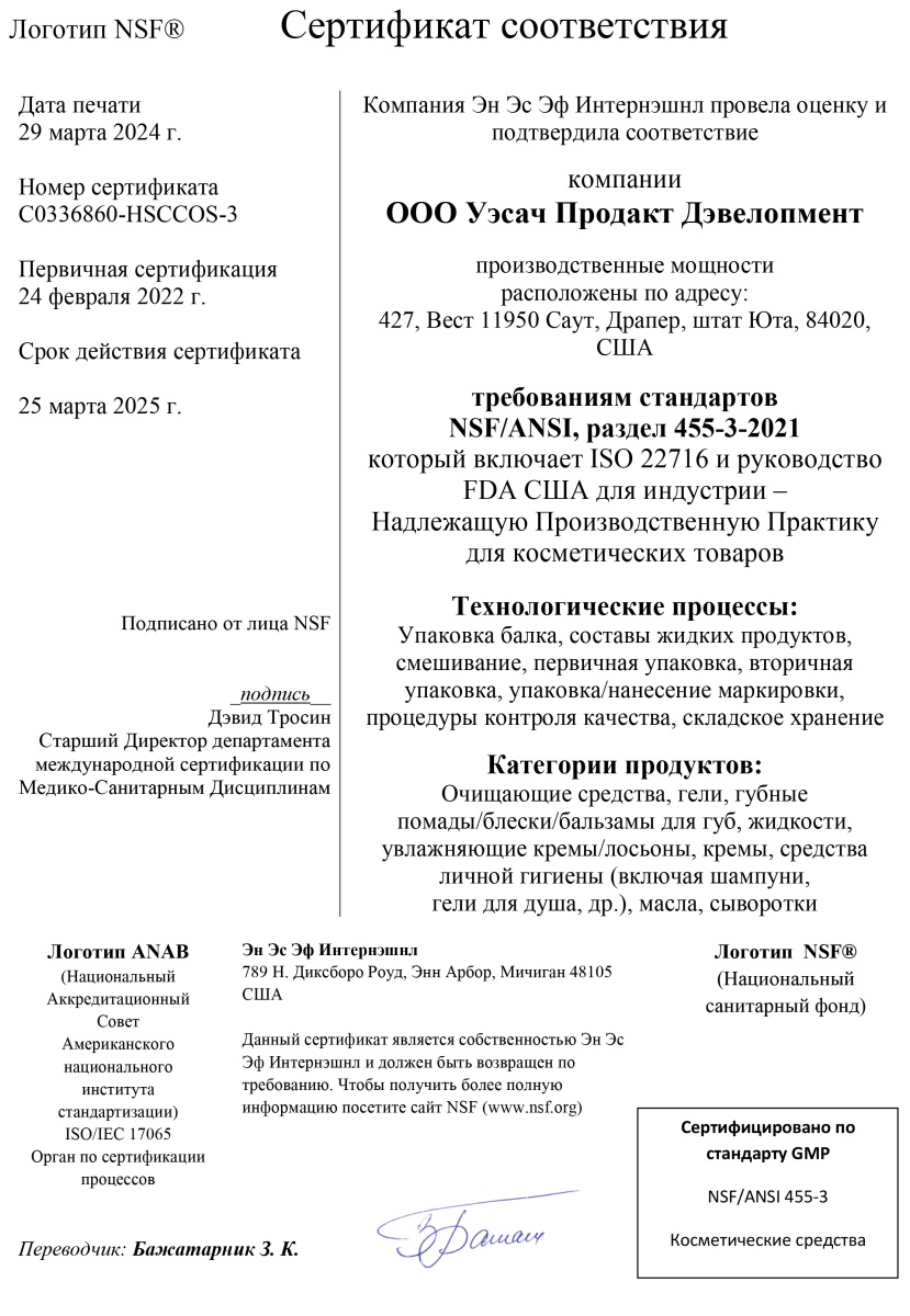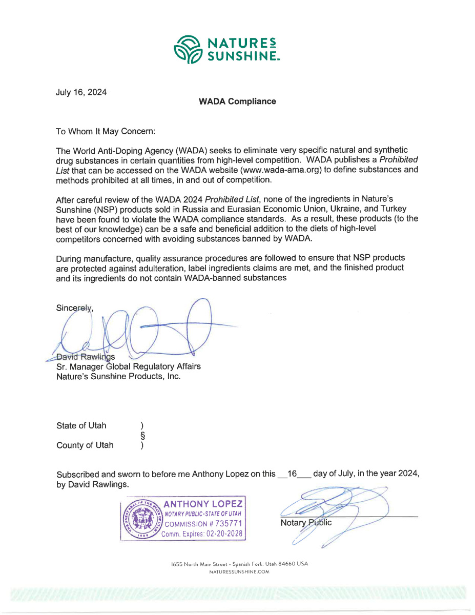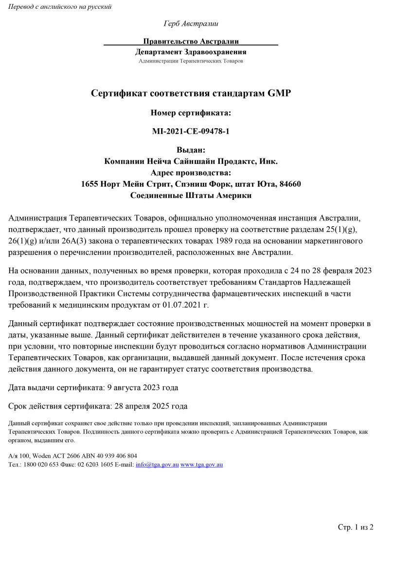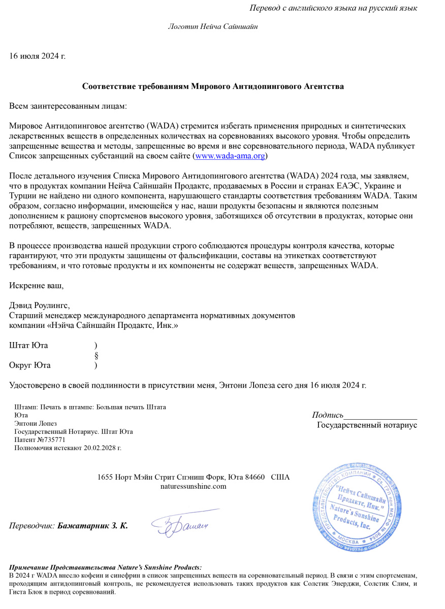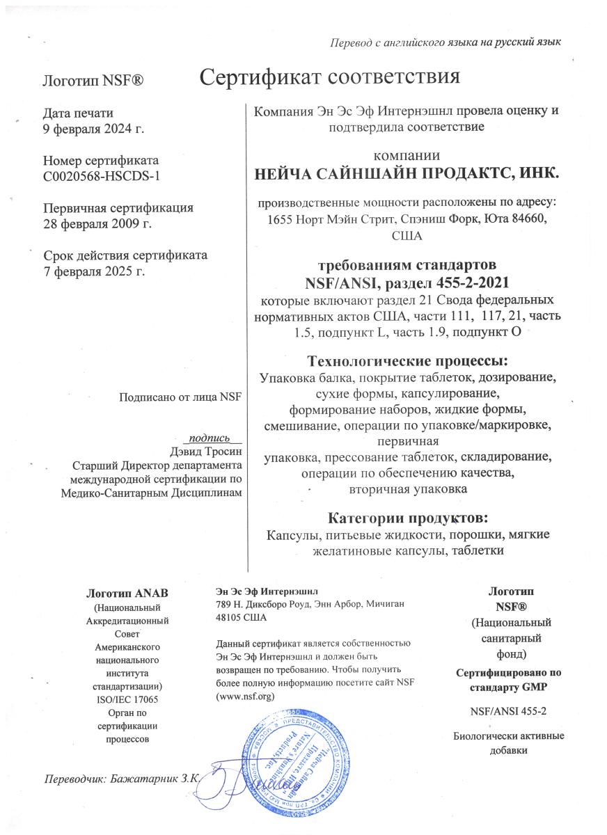 Продукция NSP по всем критериям соответствует требованиям сертификатов WADA, GMP, NSF, TGA, Organic, Kosher Service и др. Такое признание невозможно без строгого отбора сырья и контроля на каждом этапе производства.