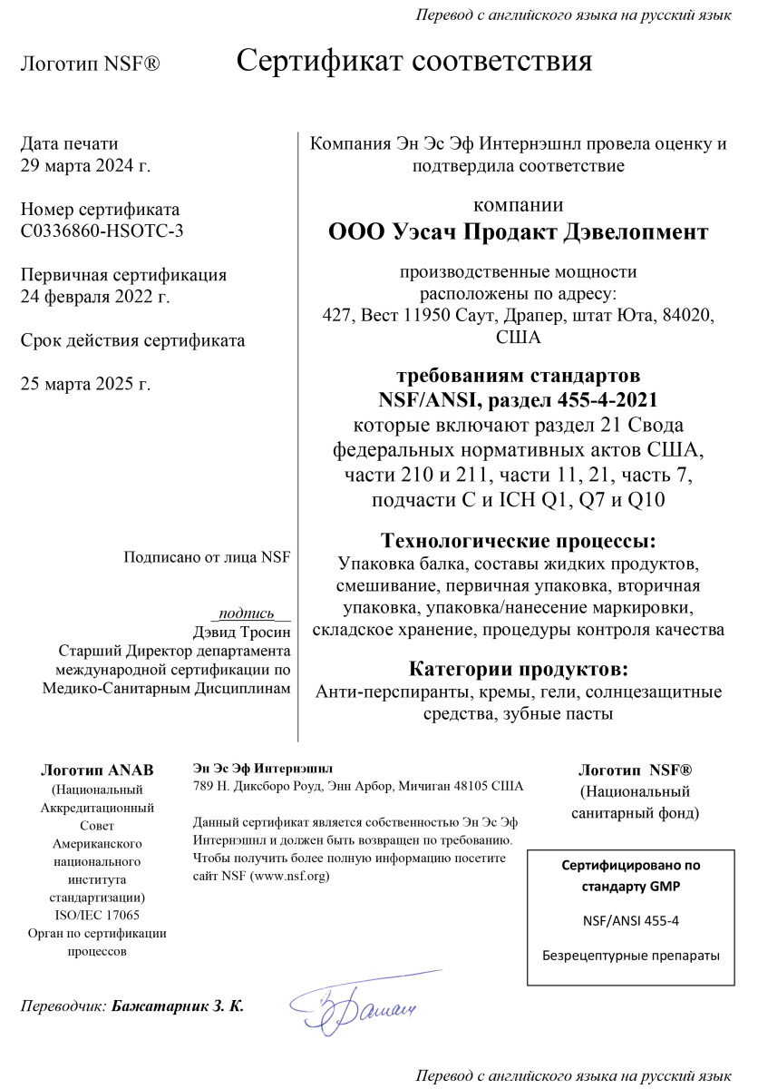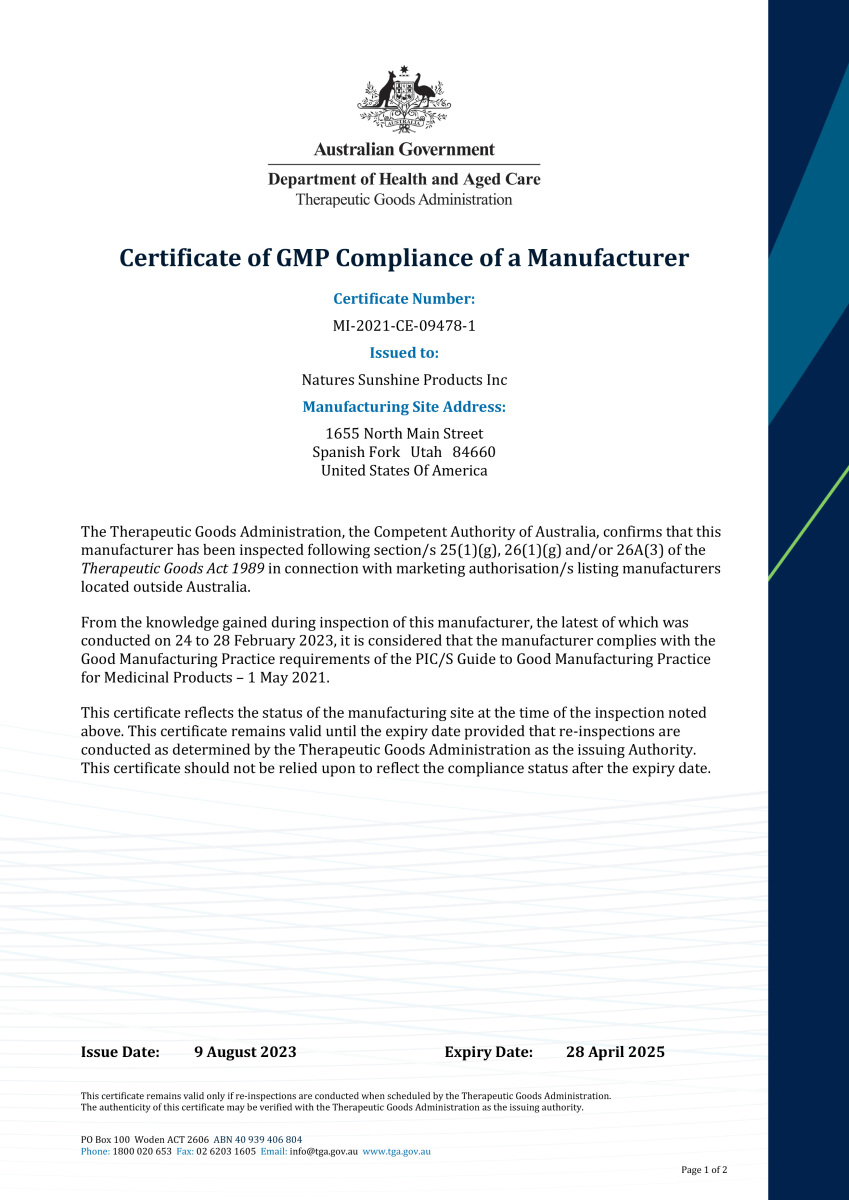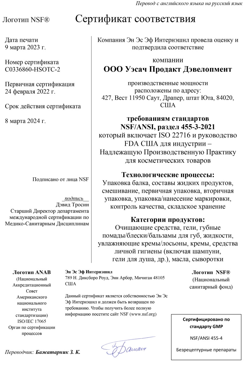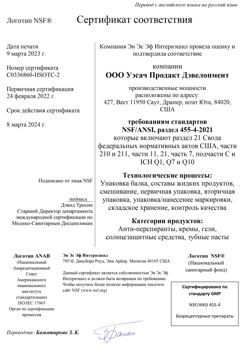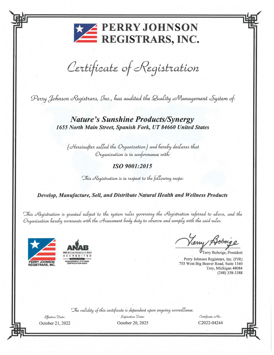 Продукция NSP по всем критериям соответствует требованиям сертификатов WADA, GMP, NSF, TGA, Organic, Kosher Service и др. Такое признание невозможно без строгого отбора сырья и контроля на каждом этапе производства.